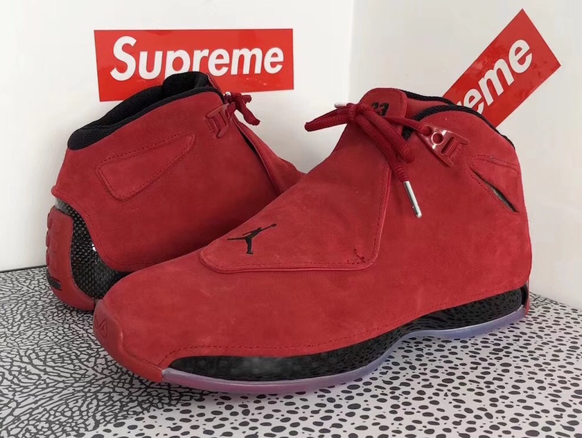 在年初 “Sport Royal” 发售之后,Air Jordan 18 将于下月释出一款全新的 Air Jordan 18 “Toro” 配色。近日,这双 Air Jordan 18 “Toro” 释出实物摆拍图片,其火红的造型十分令人惊艳。