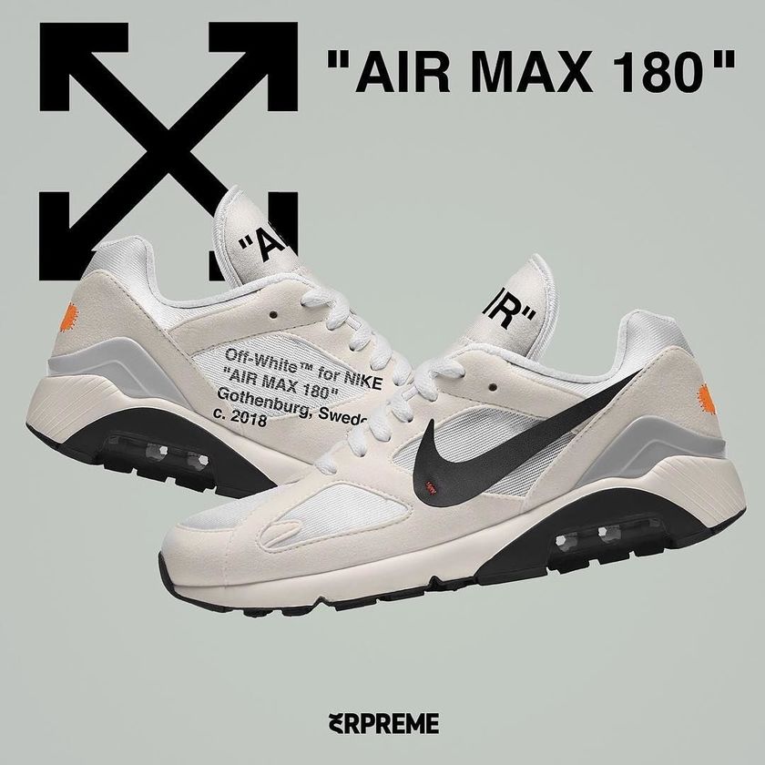 OFF-WHITE x Nike 将在2018继续引爆鞋界热度,虽然目前只发布了零星几款,但相信完整系列也将完整曝光。从去年开始,就有不少“心灵手巧”的网友开始设计OFF-WHITE x 各种鞋款的定制设计,有实物也有创想图。此番国外球鞋玩家 @srpreme 再度脑洞大开,晒出自己的假想设计作品 OFF-WHITE x Nike Air Max 180。感觉还不错哦?