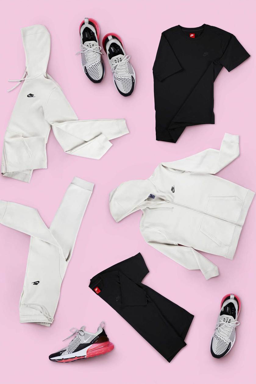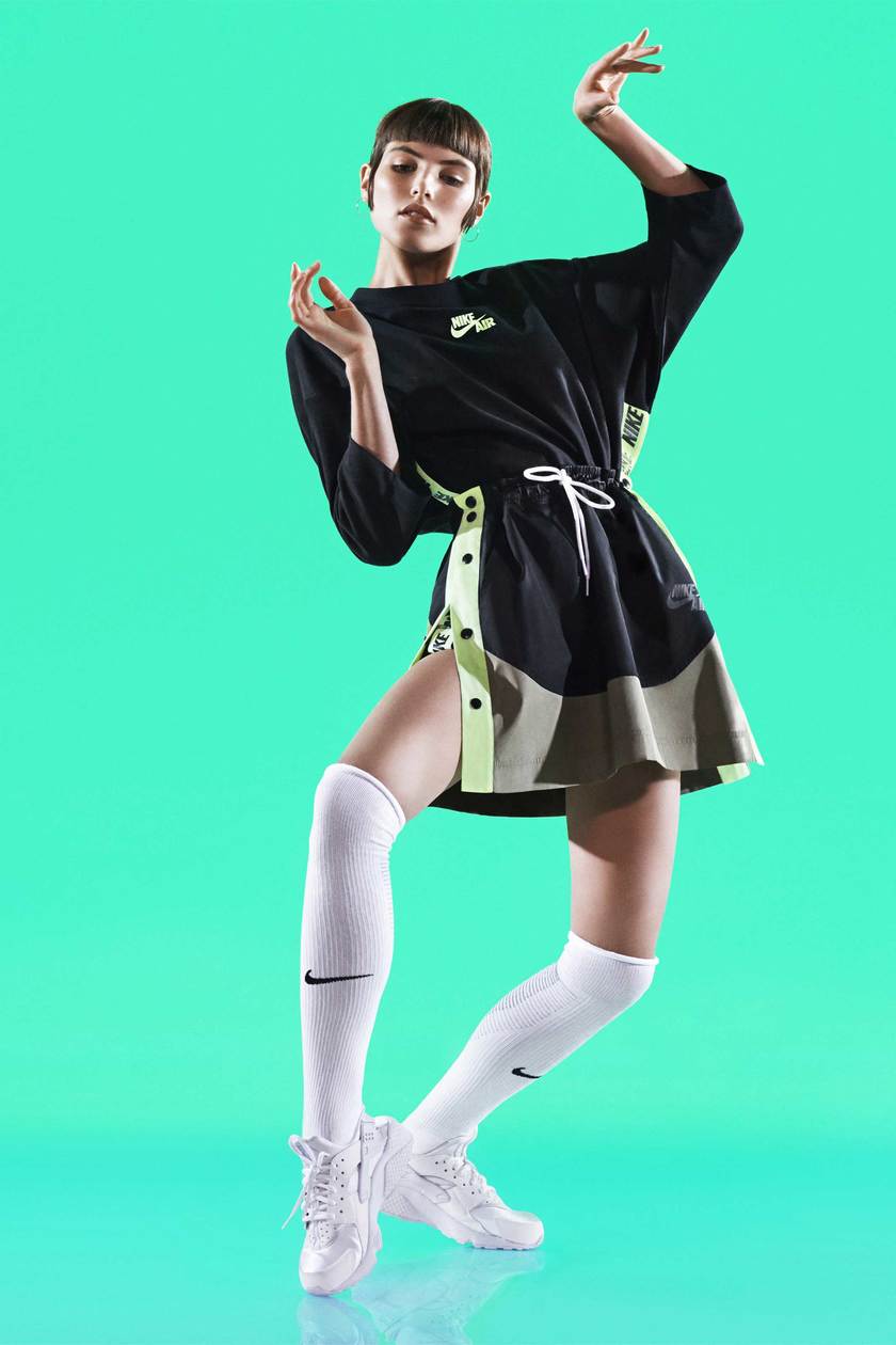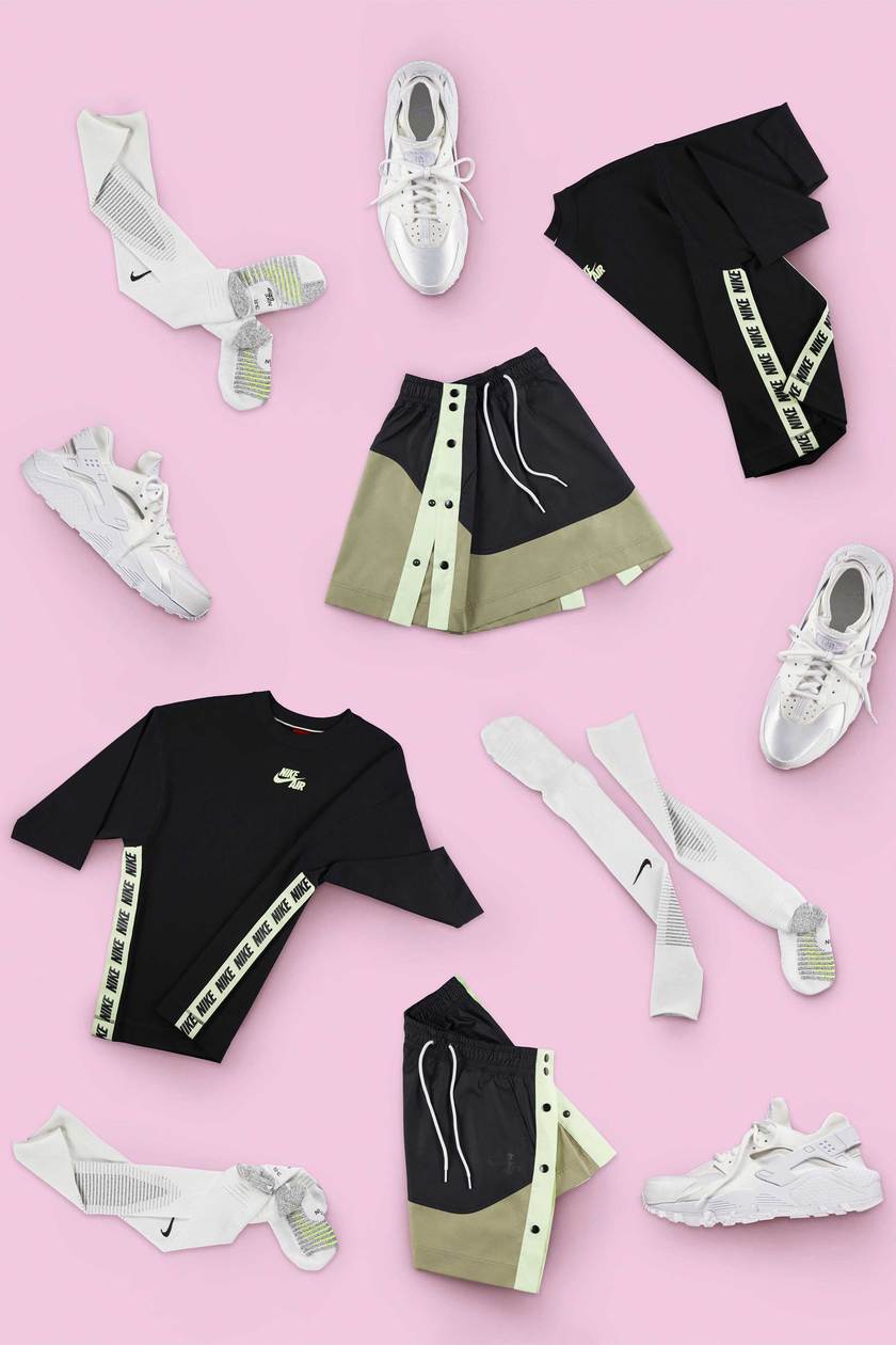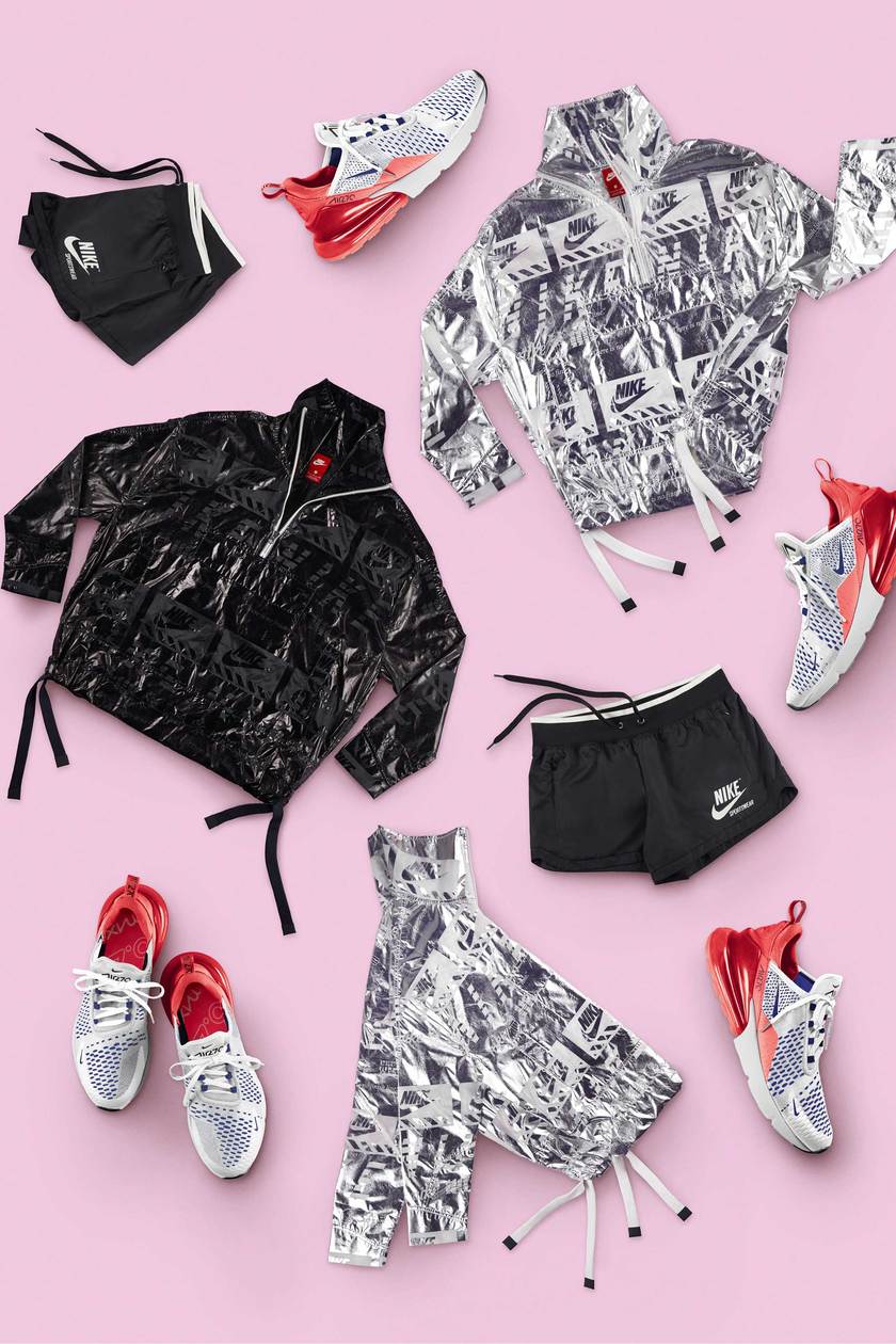 女装部分除了类似镜面材质的运动夹克外,还有青春活力十足的运动短裙,再加上 Nike 的串标设计和 Air Max 270、Air Huarache 等新配色鞋款,绝对是你春季穿搭的最佳选择。