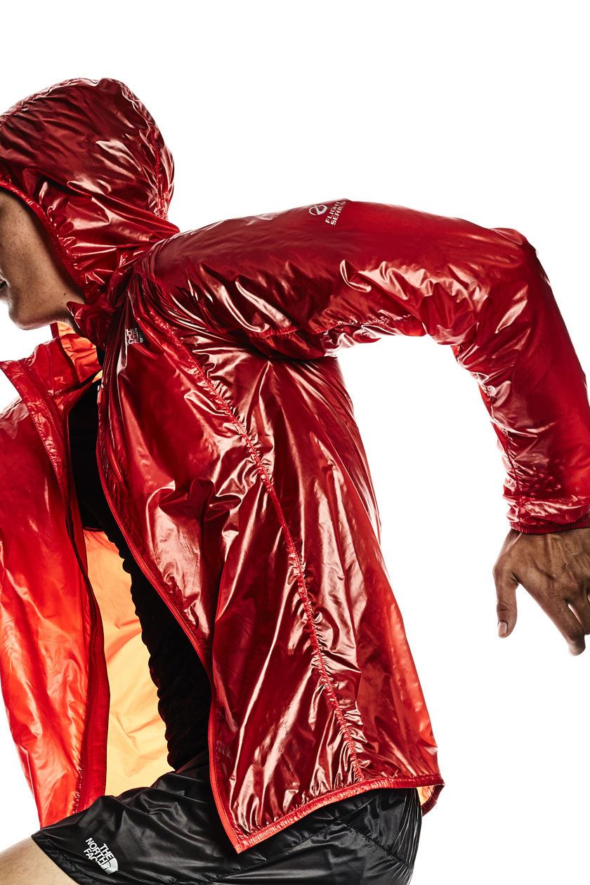 FLIGHT RKT JACKET 由 The North Face 全球签约运动员设计师、世界各大顶尖越野跑赛事佼佼者 Mike Foote 亲自设计,并经专业运动员测试,能满足竞赛需求。作为 The North Face 史上最轻量的跑步夹克,FLIGHT RKT JACKET 重量仅为 79g,“轻薄”在此得到了更优化简约的体现。