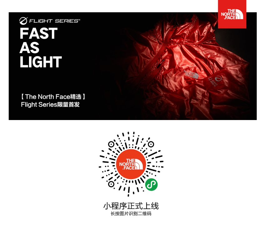 Flight Series 装备现已在 The North Face 小程序全新首发,进入小程序即可购买。