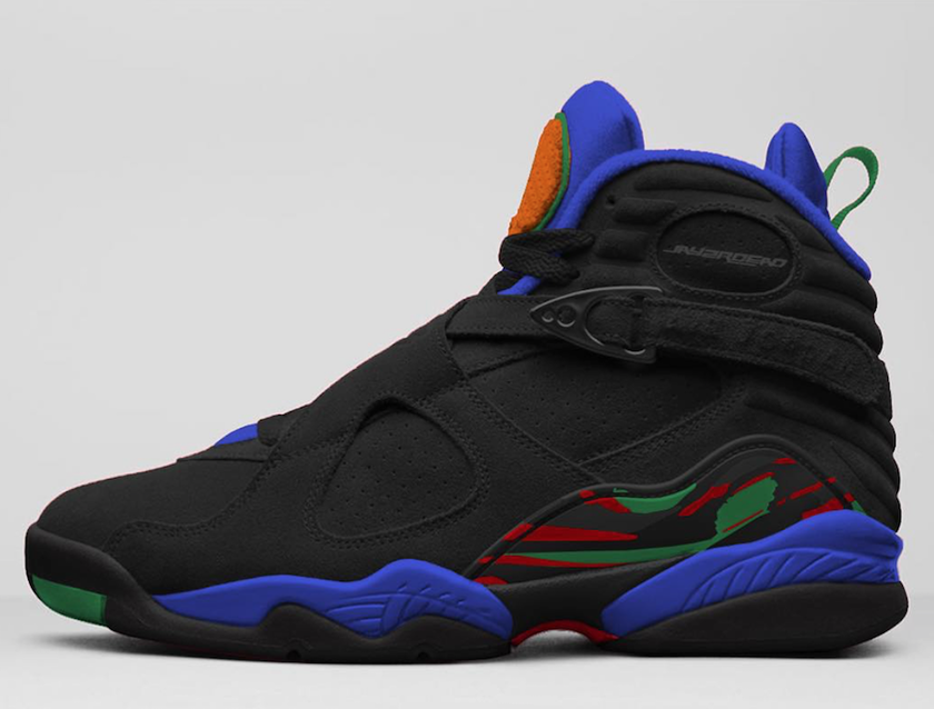 虽然尚未释出任何实物图片,但传闻此番 “Light Concord” 将黑色、皇家蓝、橙色、绿色以及红色注入 Air Jordan 8 鞋款之中,打造出一款极具圣诞风情的8代鞋款。