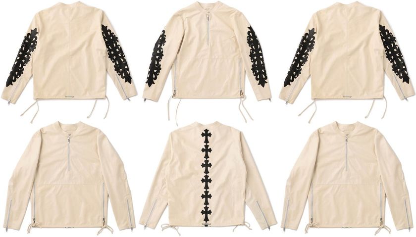 作为全球最著名的银饰品牌,Chrome Hearts 可以说是一直以来经久不衰的经典,近日 Chrome Hearts 就和 Dover Street Market Ginza 推出了全新合作,带来了两款联乘半拉链皮质夹克,我们可以看到 Chrome Hearts 经典的十字架图案被以串标的形式注入到袖子以及衣服胸口处。据悉,该款卫衣现在已经登陆 Dover Street Market Ginza 门店,喜欢的朋友可以前往入手。