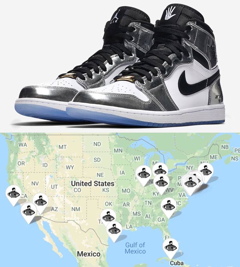 而世界球鞋零售巨头 Foot Locker, 也于近日释出了这款 Air Jordan 1 的美国地区发售店铺图。从图上零零散散的标示来看,这款大家所喜爱的 “Pass The Torch” 配色货量并不算太大,入手存在一定难度。