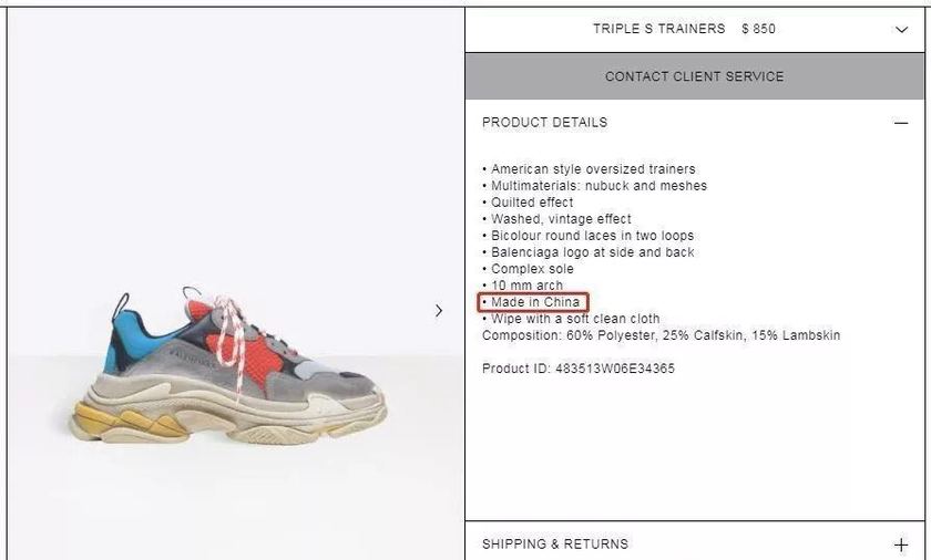 而这次辱华事件的导火索Balenciaga Triple S,可谓是世界闻名。在释出之后就被无数明星网红带货,引起全球潮人疯狂追捧,而作为世界上最大消费市场的中国当然也不例外。在前段时间,巴黎世家为了减少成本,还将 Balenciaga Triple S 的工厂从意大利搬至中国。而现在,作为世界上最大消费市场中的一员,在法国购买自己国家生产的单品,却在购买途中得到这种待遇,确认令人无语。