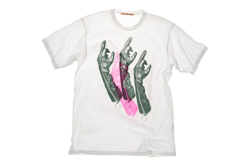 Acne Studios 本月动作颇多,近日又携新单品回归。品牌重新设计了 2014 年秋冬系列尽显叛逆的“中指”图案,呈现于全新别注系列的图案 T-Shirt 上。T-Shirt 有黑色、白色、浅绿和粉红四种选择,为即将到来的夏日提供多样的搭配方案。目前,该系列已可于 Acne Studios 各大指定店铺购得。