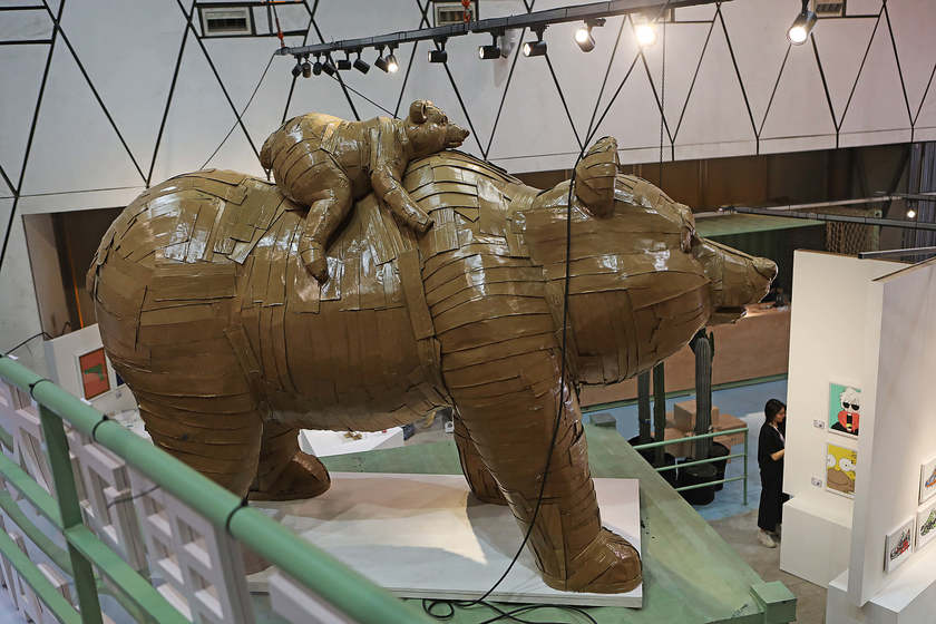加拿大艺术家Laurence Vallières利用环保材料制作的动物雕塑,诉诸自己以女性艺术家独特的视角、细腻的情感所感知到的人与自然之间的情感与联系。她的作品或憨态可掬,或霸气外露,在世界各地举办过十多场个展,吸粉无数。这次她特地来到北京,创作了一件2.4米高,3米多长的母子熊雕塑,作品表达了家庭、关照、亲情等主题。