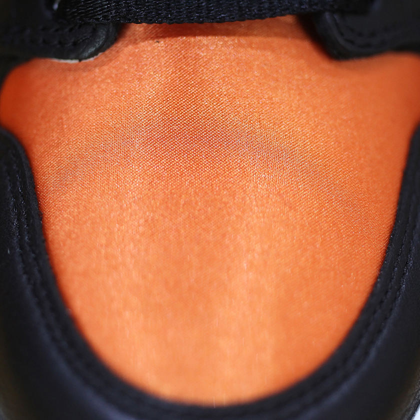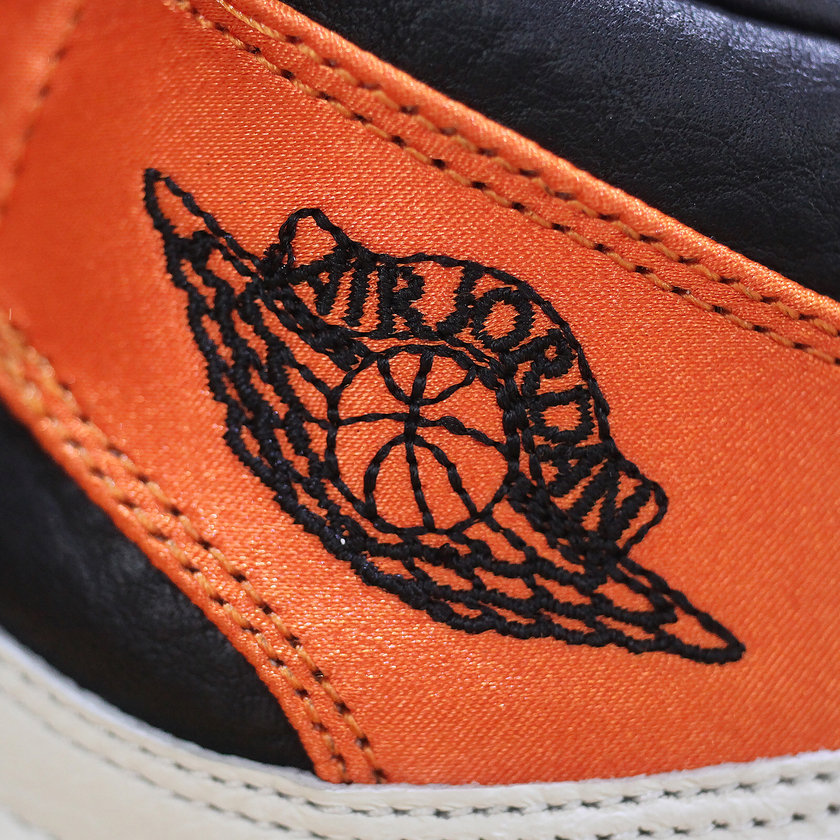 此番释出的AJ1黑扣碎虽说是丝绸版本,但实则采用皮革与丝绸联合打造,同时兼具皮革的质感以及丝绸的丝滑。侧面 Nike Swoosh 以刺绣的形式呈现,而大底也采用的半透明橙色大底,诚意满满,极具细节。