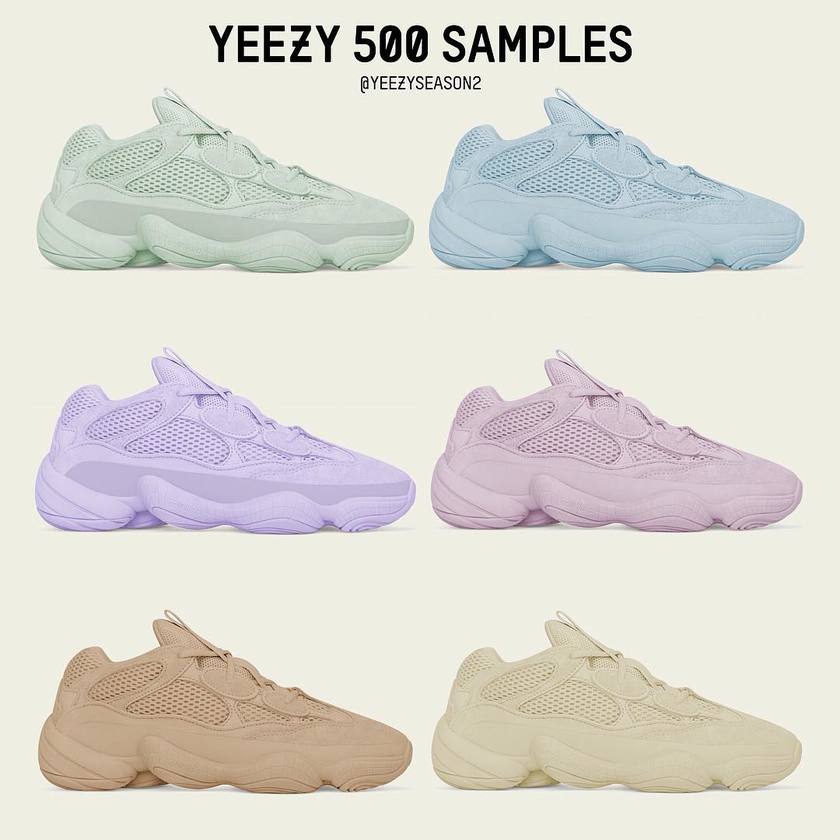 不过近日爆料账户 @Yeezyseason2 展示了一些列全新的 YEEZY 500 sample 配色,有不少已经在侃爷的Twitter里出现过了,看来Yeezy 500 还是与纯色更搭。这样有些小清新的配色搭配Yeezy 500的复古鞋身,不仅没有突兀感反而视觉效果更加柔和,你喜欢吗?