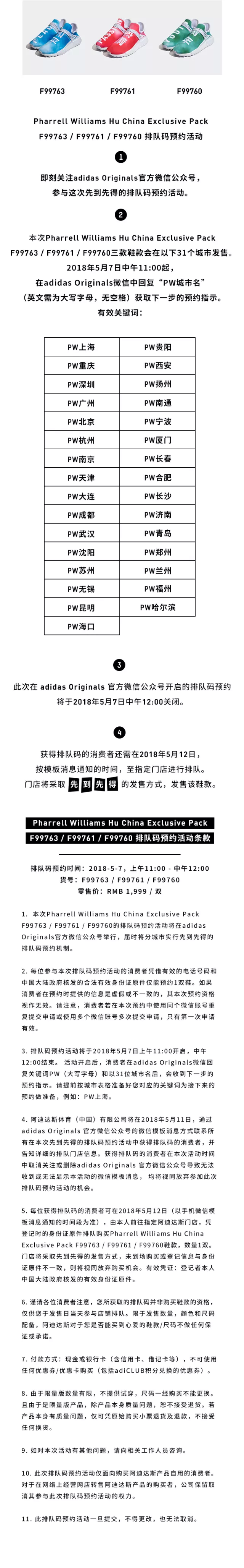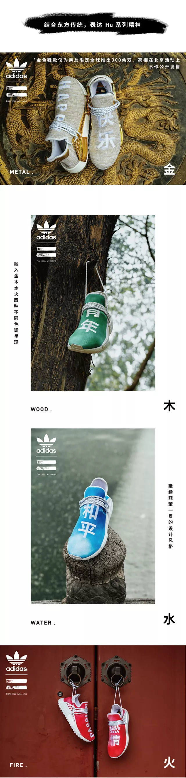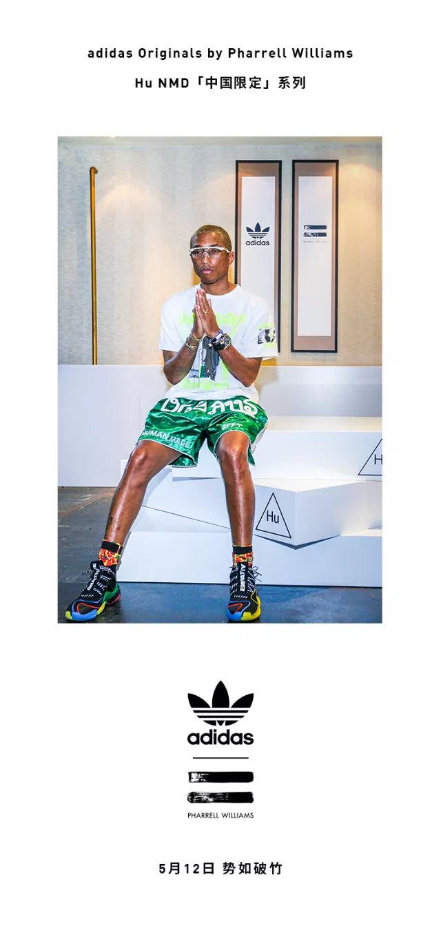 Pharrell x adidas Originals Hu NMD 中国限定配色将在5月12日发售,且今天通过三叶草微信公众号进行登记,中午12点截止!定价为 ¥1999 RMB,其中的 HAPPY 金色版本为亲友限定,并不市售。感兴趣的朋友请阅读下面的登记方式,祝大家好运!