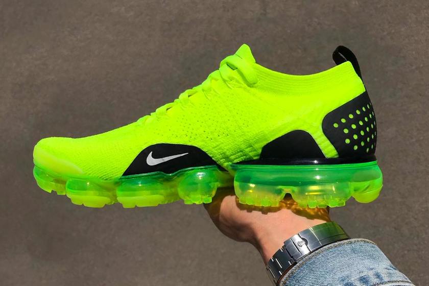 此番,网络上又曝光了一双 Air VaporMax 2 Flyknit「Volt」配色的最新谍照。新鞋在设计上选用大胆明亮的「荧光绿」色为主调,辅以黑色后跟支架与白色 Swoosh 作点缀,更以荧光绿半透明 VaporMax 大底呼应鞋面,除了迎合春夏的明媚天气外,也能为你的街头造型增加更多回头率。据悉这款 Nike Air VaporMax 2 将于今年夏季正式发售,而定价为 $190 美元。
