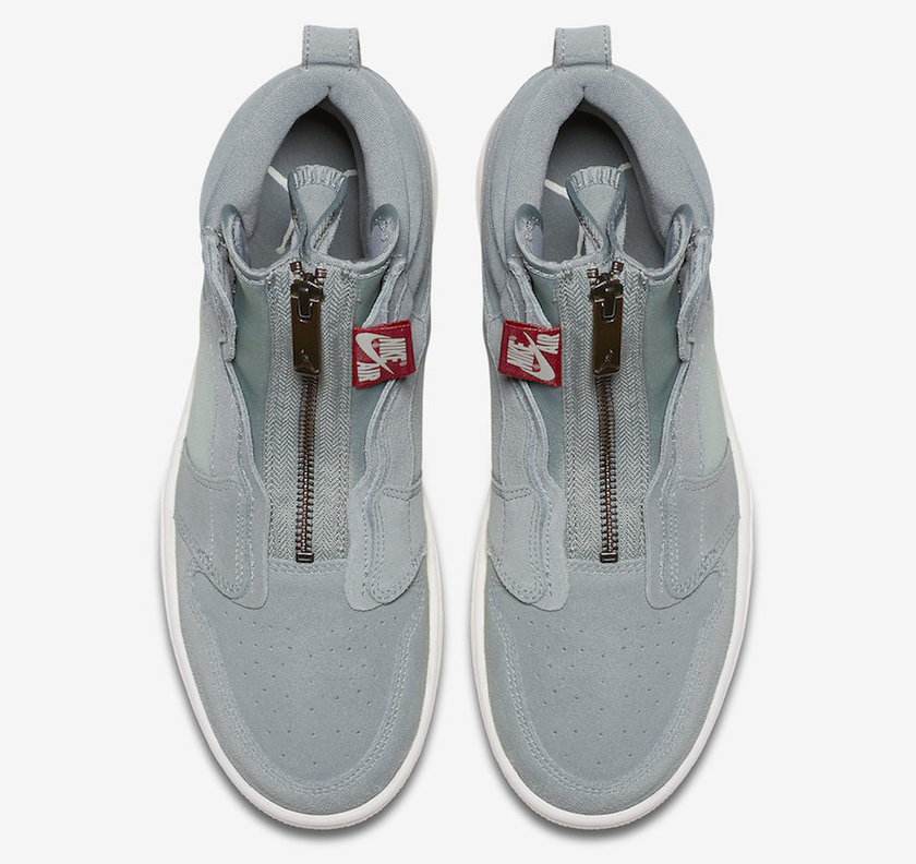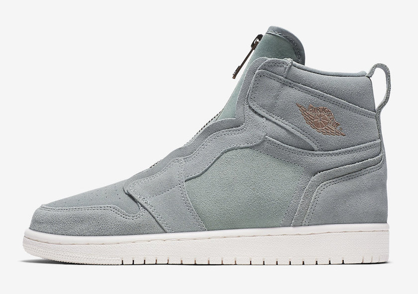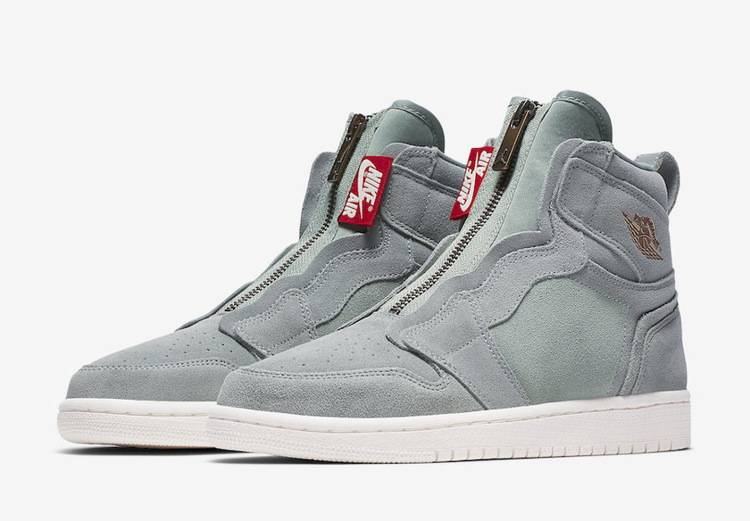 这款 Air Jordan 1 High Zip “Mica Green” 采用早先释出的 Air Jordan 1 High Zip 鞋型,舍弃了经典的鞋带设计,以极具高街风范的拉链设计替代之。而云母绿色调的翻毛皮材质,柔软且极具质感。搭配金属色调的飞翼 Logo 以及内侧醒目的红色 Nike 标示,与9孔OG鞋型呈现出完全不同的气质。