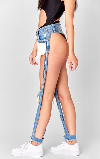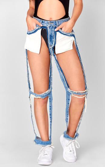 不同于普通的破洞牛仔裤,这是一条几乎360度都破洞的牛仔裤!