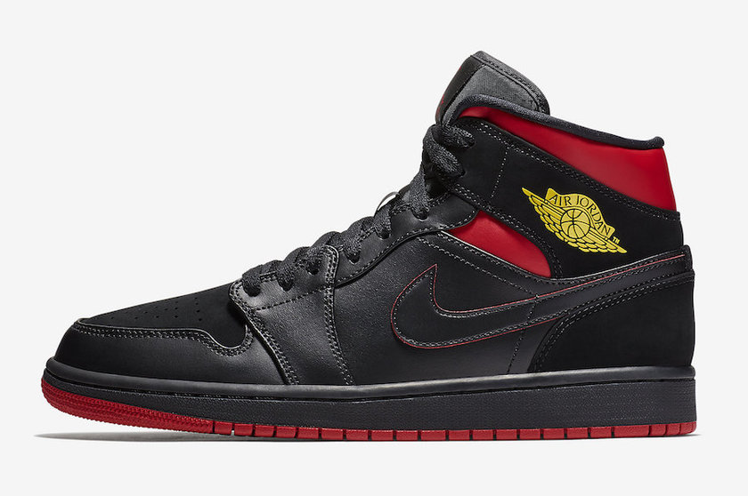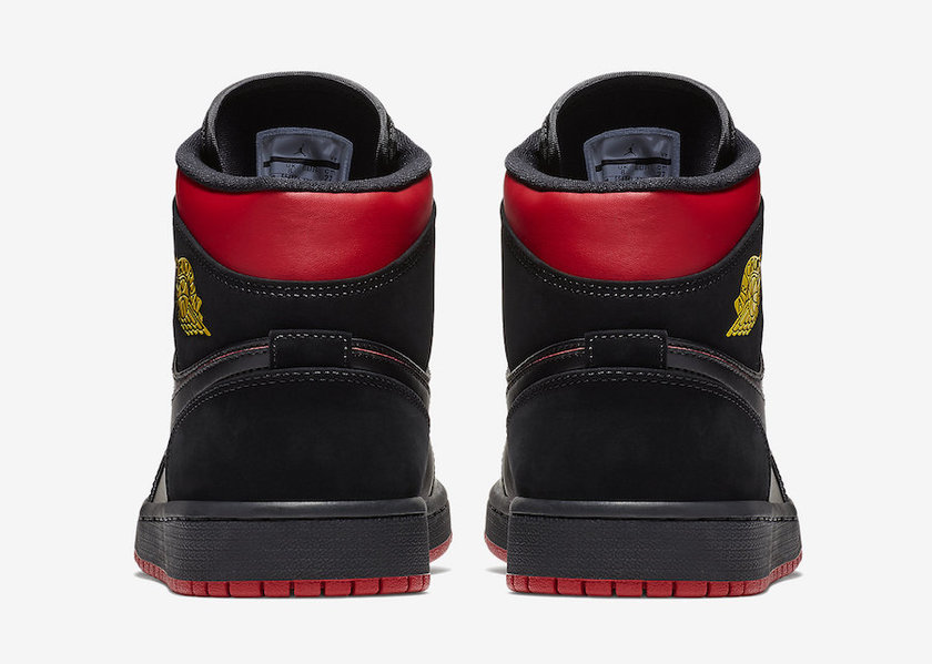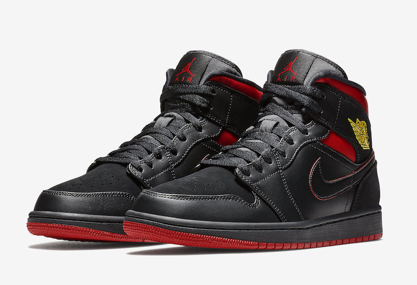 此番 Air Jordan 1 Mid “Last Shot” 类似 Air Jordan 14 “Last Shot” 的黑红配色。鞋身以顺滑质的黑色优质皮革打造,鞋头、鞋帮、以及后跟处辅以哑光色调的黑色麂皮材质,层次分明。鞋帮、大底、以及鞋面细节处以鲜红色调,搭配显眼醒目的黄色飞翼 Logo,直击最后一投主题!