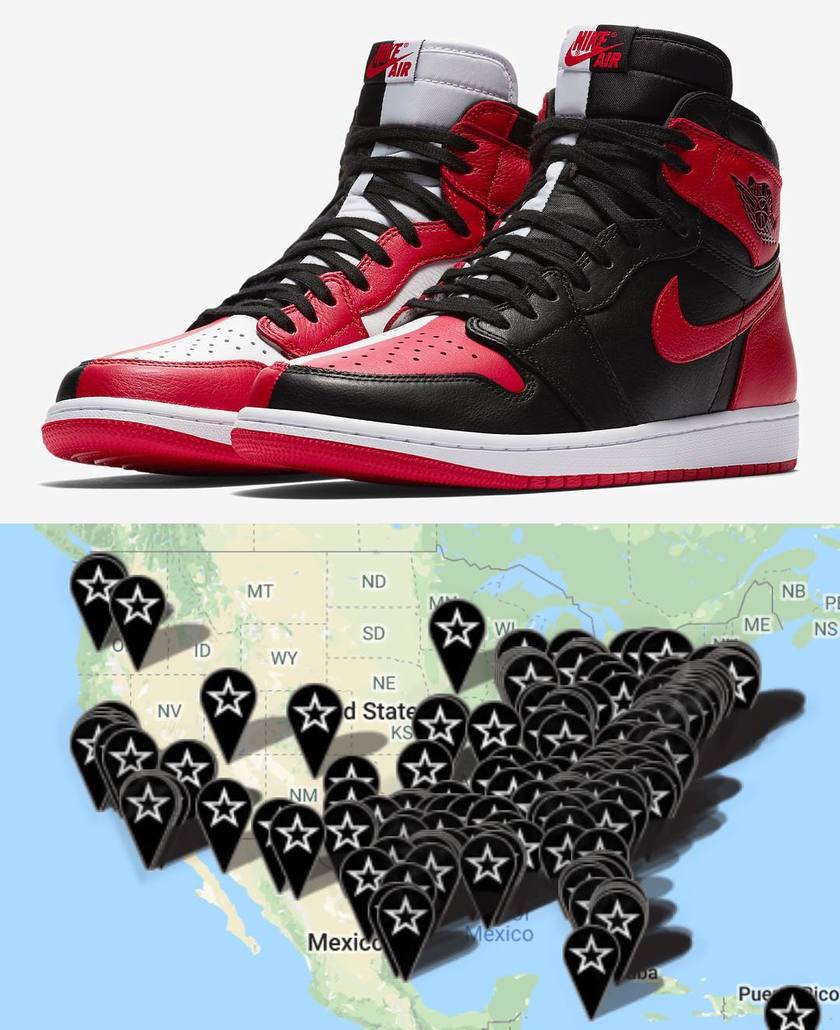 而从网络上释出的美国地区发售店铺图来看,这款非编号版本 Air Jordan 1 “Homage To Home” 的货量并不算太小。但考虑到 Air Jordan 1 以及 “Bred”