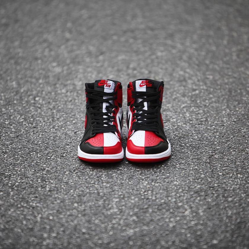 此番非编号版本 Air Jordan 1 “Homage To Home” 同样采用 “Bred” 和 “Chicago” 合二为一的阴阳拼接设计。除了没有限量编号之外,非编号版本后跟也没有 “FROM” 和 “FOR” 的字样。