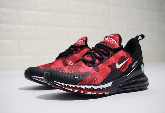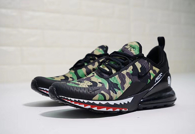 Bape 虽然是“联名大户”,但从未与 Nike 合作过,但近日网络中竟然惊现 Bape x Nike Air Max 270 两款配色的实物,不知道是定制作品呢,还是双方的首次联名作品?可以看出鞋款以 Bape 经典的迷彩元素覆盖鞋面,中底前部点缀同样经典的鲨鱼齿印花,后跟处 Bape 的猿人 Logo 赫然呈现,两大品牌的风格融合得异常和谐,你喜欢这样的Bape x Nike Air Max 270 嘛?