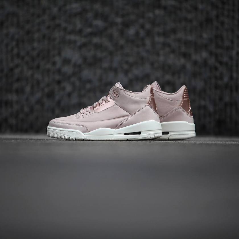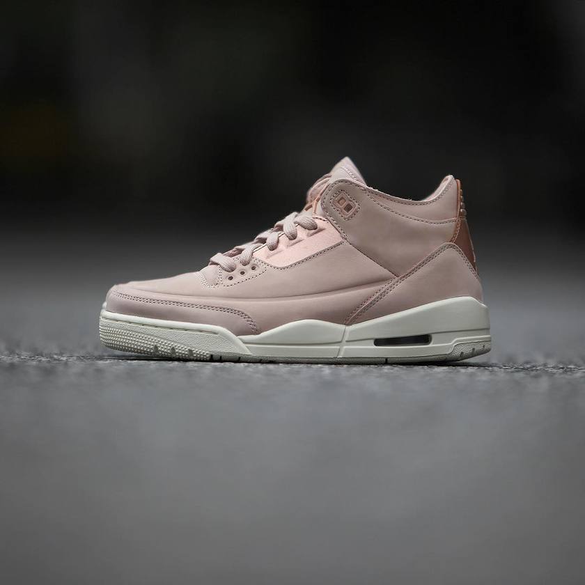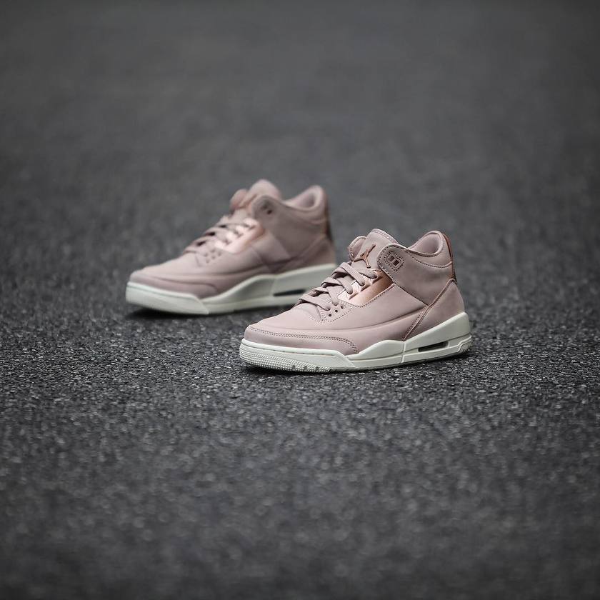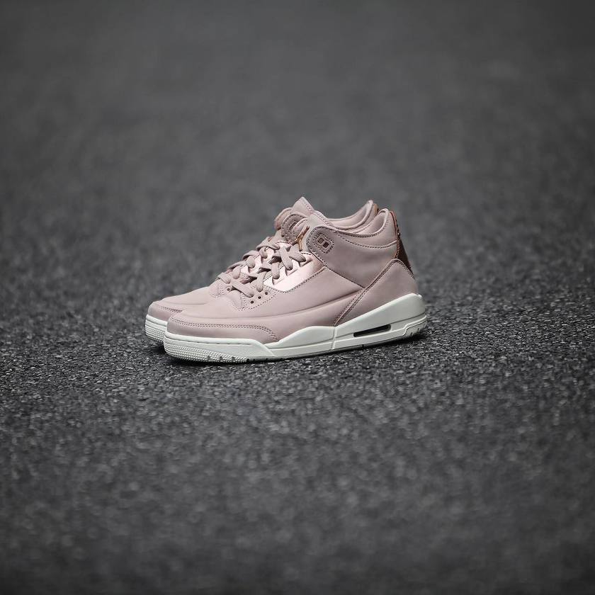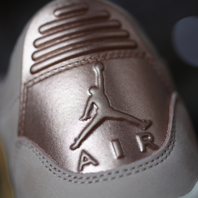 这款与 Air Jordan 11 玫瑰金配色同系列的 Air Jordan 3 SE “Particle Beige” 同样采用裸色搭配玫瑰金的配色设计,取消掉了3代标志性的爆裂纹路,转而以质感极佳的裸色牛巴革材质将鞋面包裹,搭配玫瑰金的后跟以及鞋面细节,甜美而高级,相信很多小姐姐会喜欢。