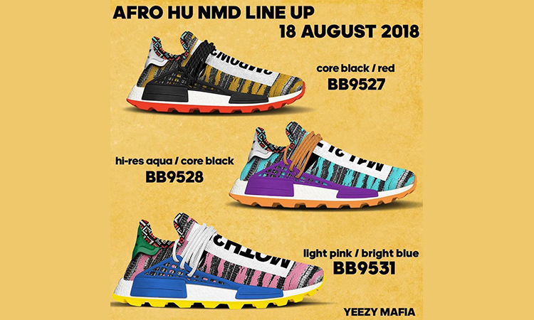 该系列将包括 3 款 Hu NMD Trail、2 款 Hu Tennis V2,甚至连早先曝光的新鞋型 Hu Glide 的总共 6 种不同男女配色也将在这次发售中登场。