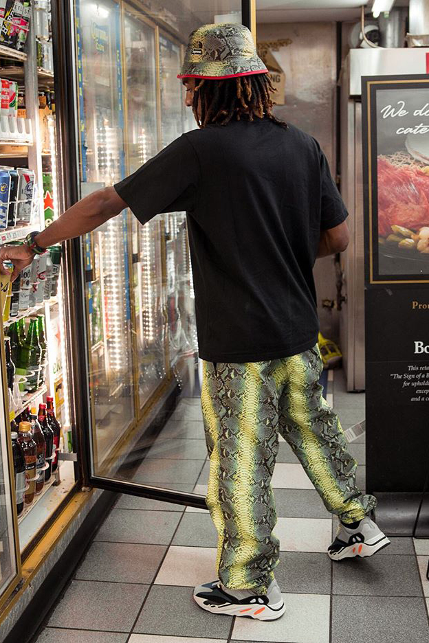 在 Supreme x THE NORTH FACE 第二波蛇鳞纹联名系列预告后,目前流出的唯一配色就是黄、绿相间的蛇鳞纹,包括教练夹克、裤装以及帽款。
