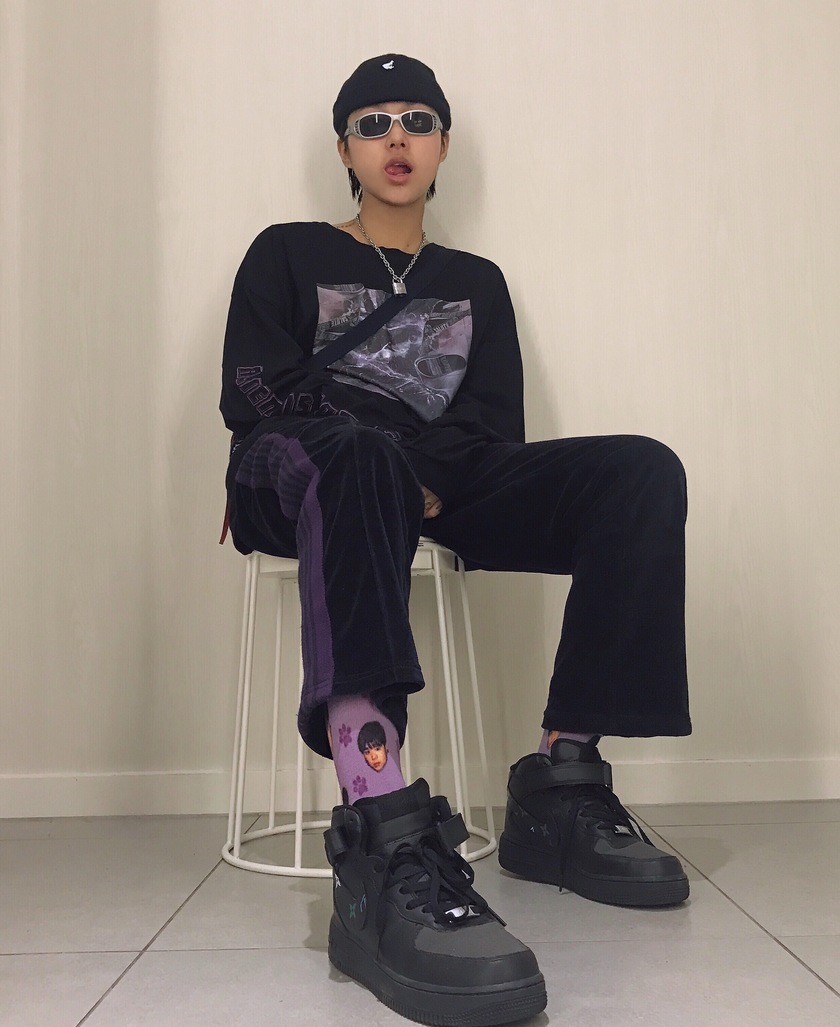 至于为什么用紫色 你看他热爱的那一头紫色头发就知道了。