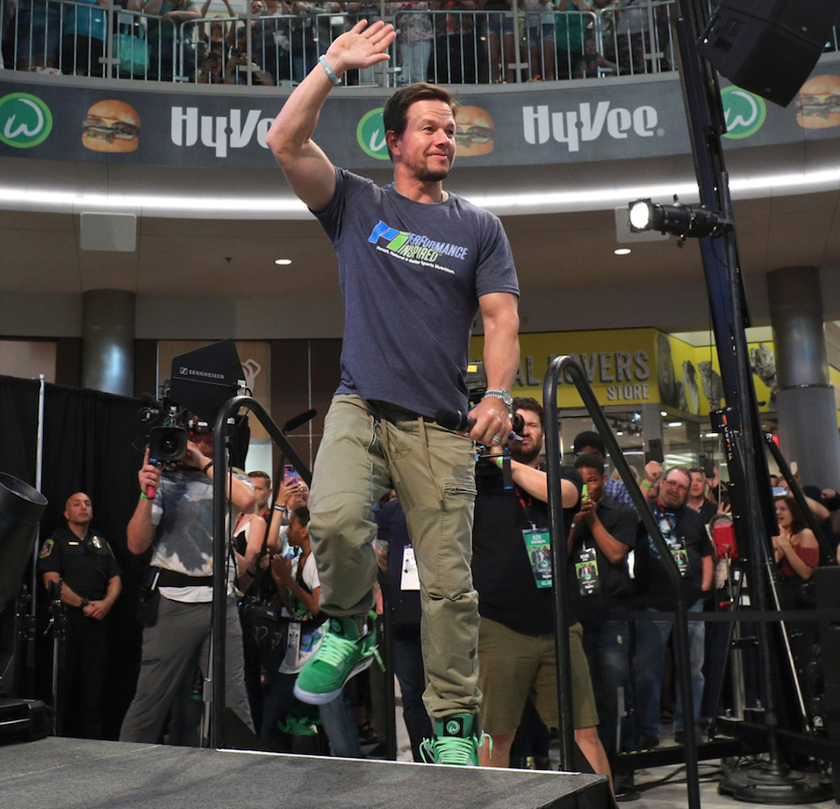 近日,好莱坞演员、制片人 Mark Wahlberg 在美国面明尼苏达购物中心 Wahlburgers 餐厅开业期间上脚一双全新配色 Air Jordan 4!