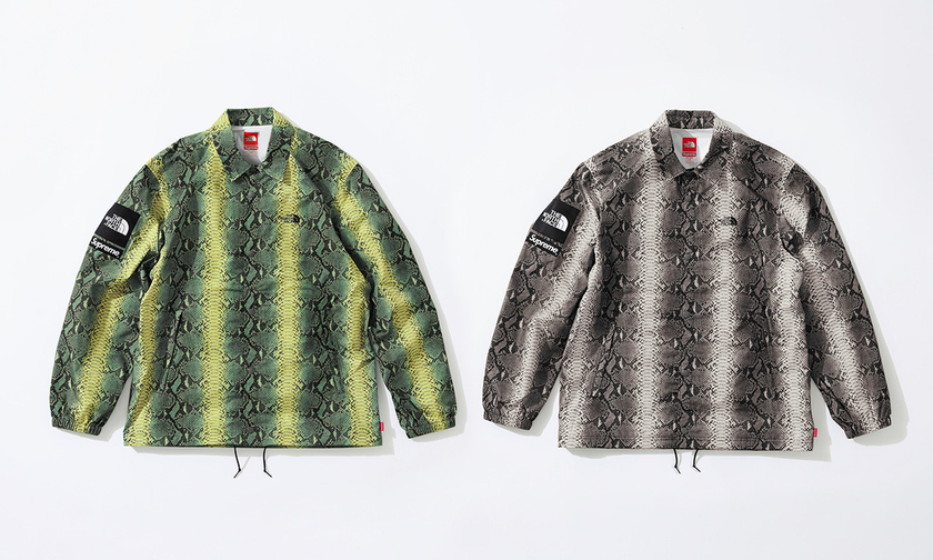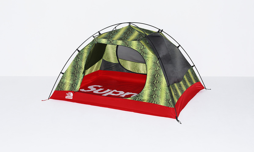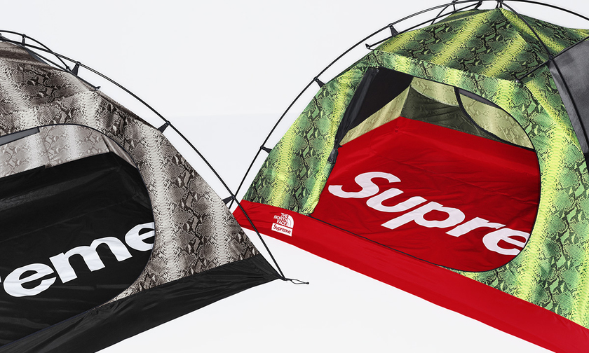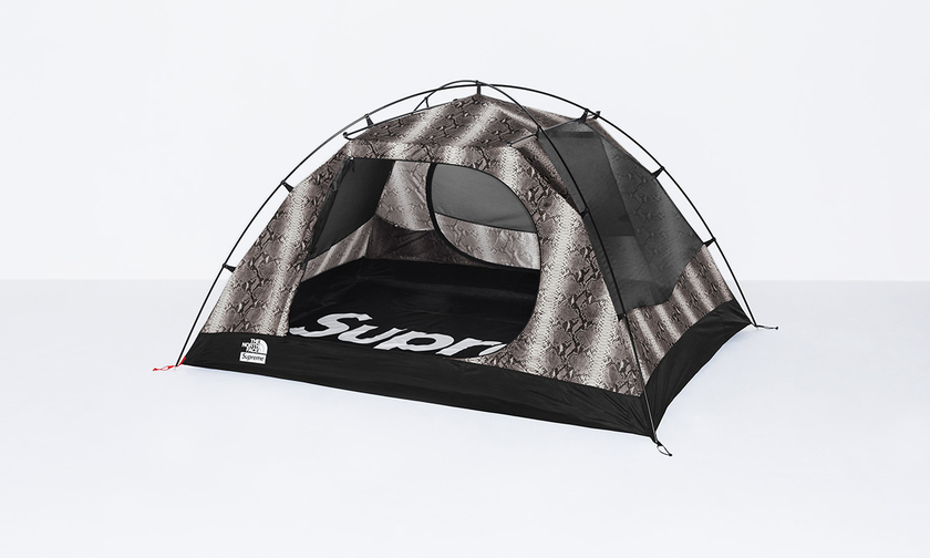 Supreme x THE NORTH FACE 为 2018 春季打造的第二辑联名系列终于正式发布。主打蛇鳞纹印花,全部单品包括教练夹克、长裤、两面戴可收纳 Crusher 帽、旅行包、背包以及最重磅的 Stormbreak 3 帐篷。