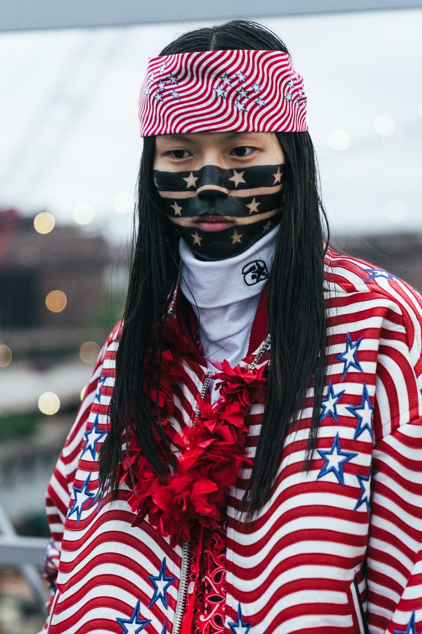 设计师 Alexander Wang 运用自己的移民背景,在保持运动美学的同时注入更多摇滚元素,同时将代表中、美两国的传统元素融入设计之中,比如国旗图案、唐装立领、金属链式围兜,又或印地安风格头巾,再配合上震撼人心的重金属背景音乐,展现美国社会对于多元文化的包容性。除此之外,本场发布会的模特阵容可谓星光熠熠,除了刘雯、刘春杰、李静雯和周淑靖为代表的中国军团之外,也不乏 Bella Hadid、Mariacarla Boscono、Anna Ewers、Vittoria Ceretti、Natalie Westling 和 Behati Prinsloo 等国际超模,完美演绎了一个又一个叛逆青年的形象。