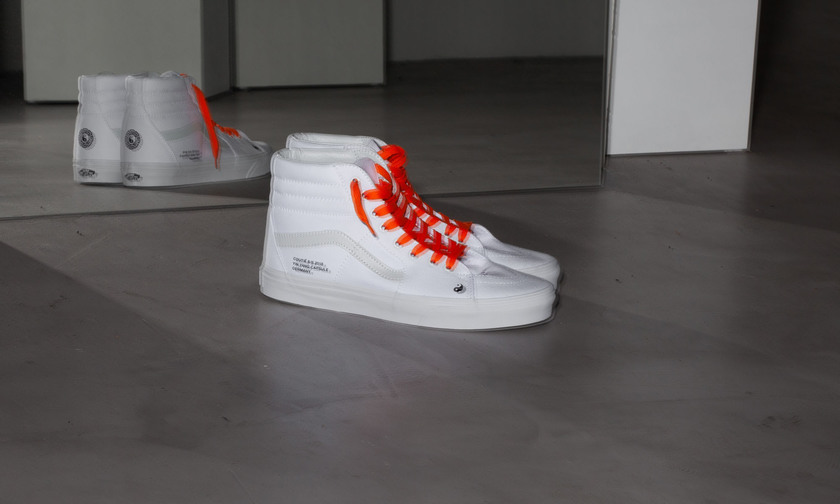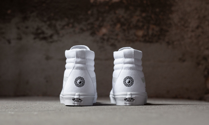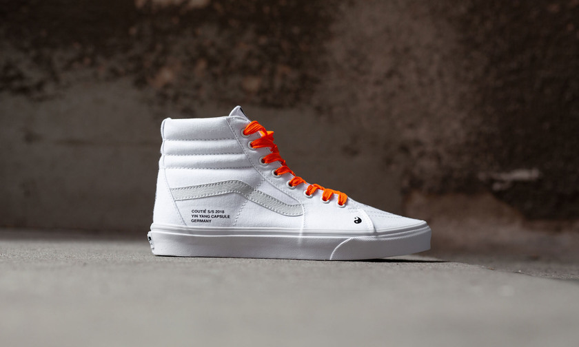 近日,德国时尚名所 Coutié 与 Vans 合作带来了包括一双 Sk8-Hi 和 T 恤、卫衣等在内名为 “Yin Yang” 的胶囊系列。顾名思义本系列以阴阳元素为主题,强调阴阳动静结合带来的内部平衡,将代表“阴”的纯白色 Sk8-Hi与代表“阳”的橙红色鞋带互相调和,再装饰以传统太极图式的阴阳 Logo 完成了整个设计,同时两款背后绣上一块阴阳 Logo 牛仔布的灰色卫衣也十分亮眼。