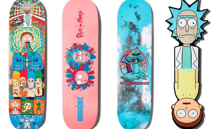 滑板品牌 Primitive 和人气动画《Rick and Morty》合作发布了一系列主题产品,品类和颜色相当丰富,从滑板装备到街头服饰、生活用品。其中抓人眼球的产品包括参考 Rick and Morty 在 Adult Swim show 的情节而设计的四块滑板板面,除此之外还有教练夹克、帽衫、T 恤,以及帽子、袜子等配件。这一系列单品售价从 11 美元至 70 美元不等,现已在Primitive 的官方网店发售。
