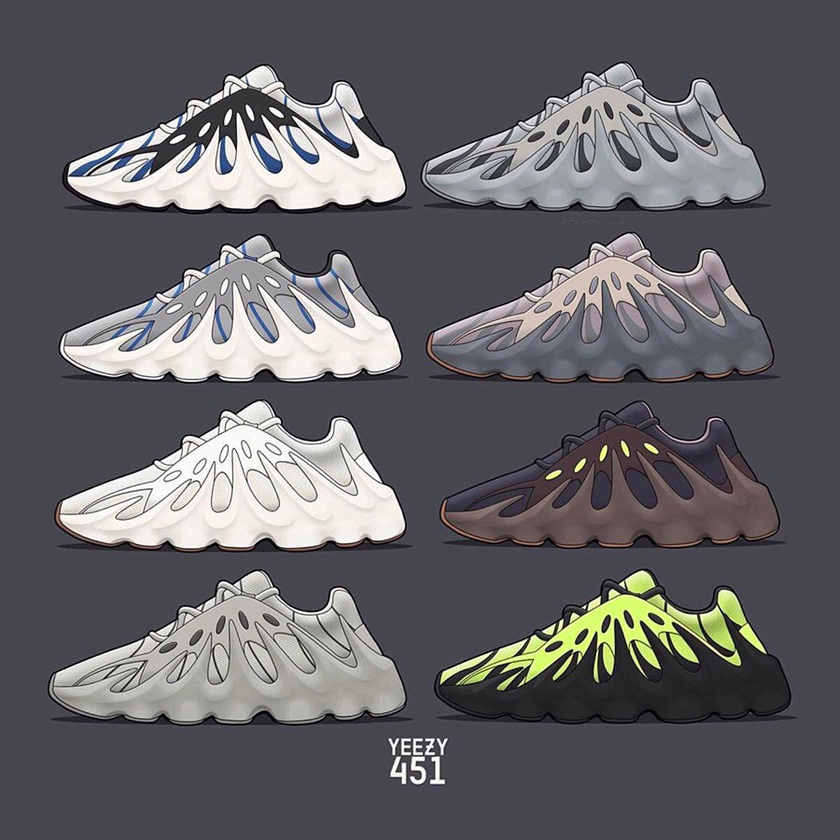 早前侃爷不是在自己的 Twitter 上曝光了许多YEEZY新款吗,其中就有这双火山造型 Yeezy 451 !