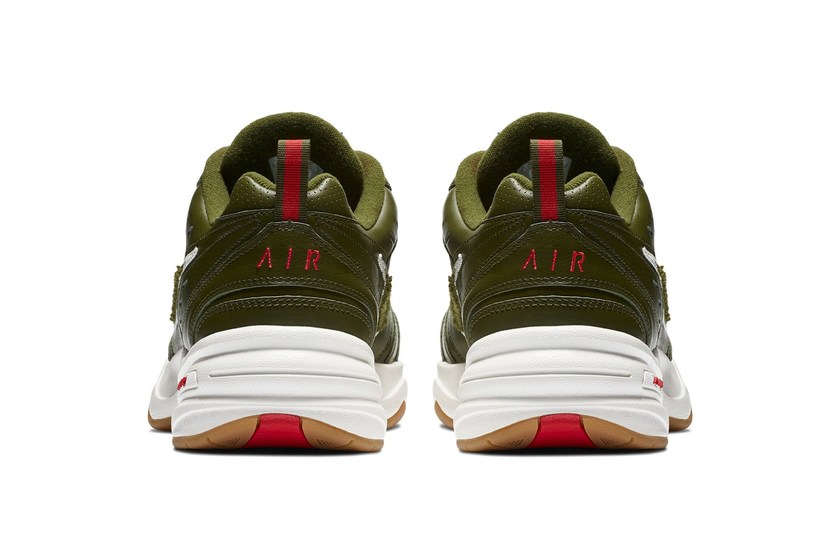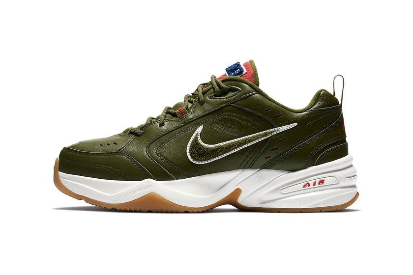 继升级版本 M2K Tekno 大获成功之后,Nike 又为元年版本 Air Monarch IV 释出全新设计。新配色从户外野营汲取灵感,并选用了军绿色皮革制作复古「Dad Shoe」鞋身,而侧身贴花 Swoosh,以及鞋舌上的“野营”标志与「1979」字样更是让人眼前一亮,最后搭载厚实白色中底和橡胶外底而成。目前这双 Air Monarch IV 已可经由 Nike SNKRS 购得,定价为 $120 美元。