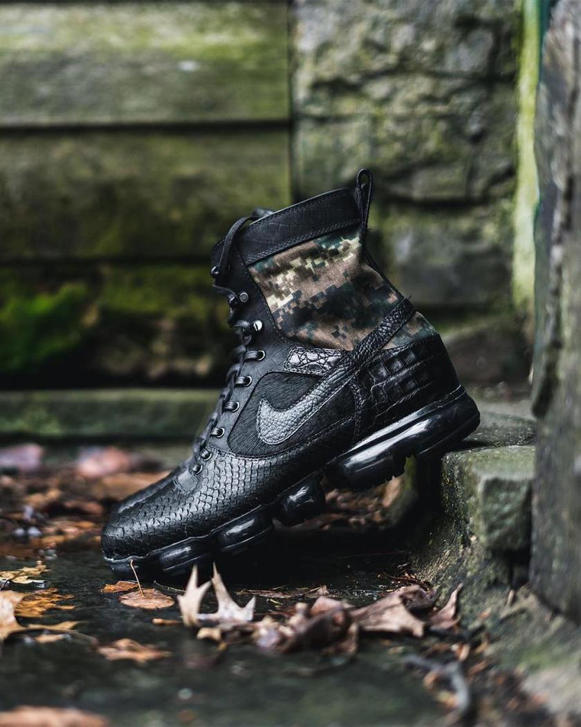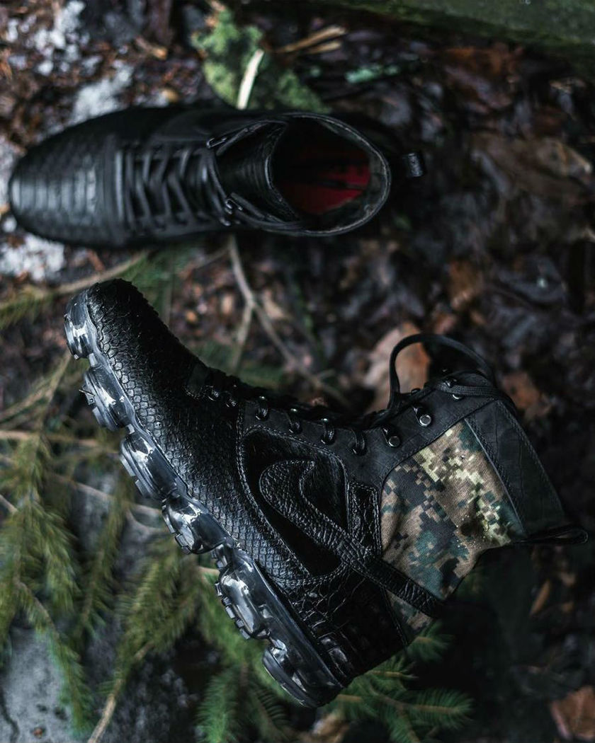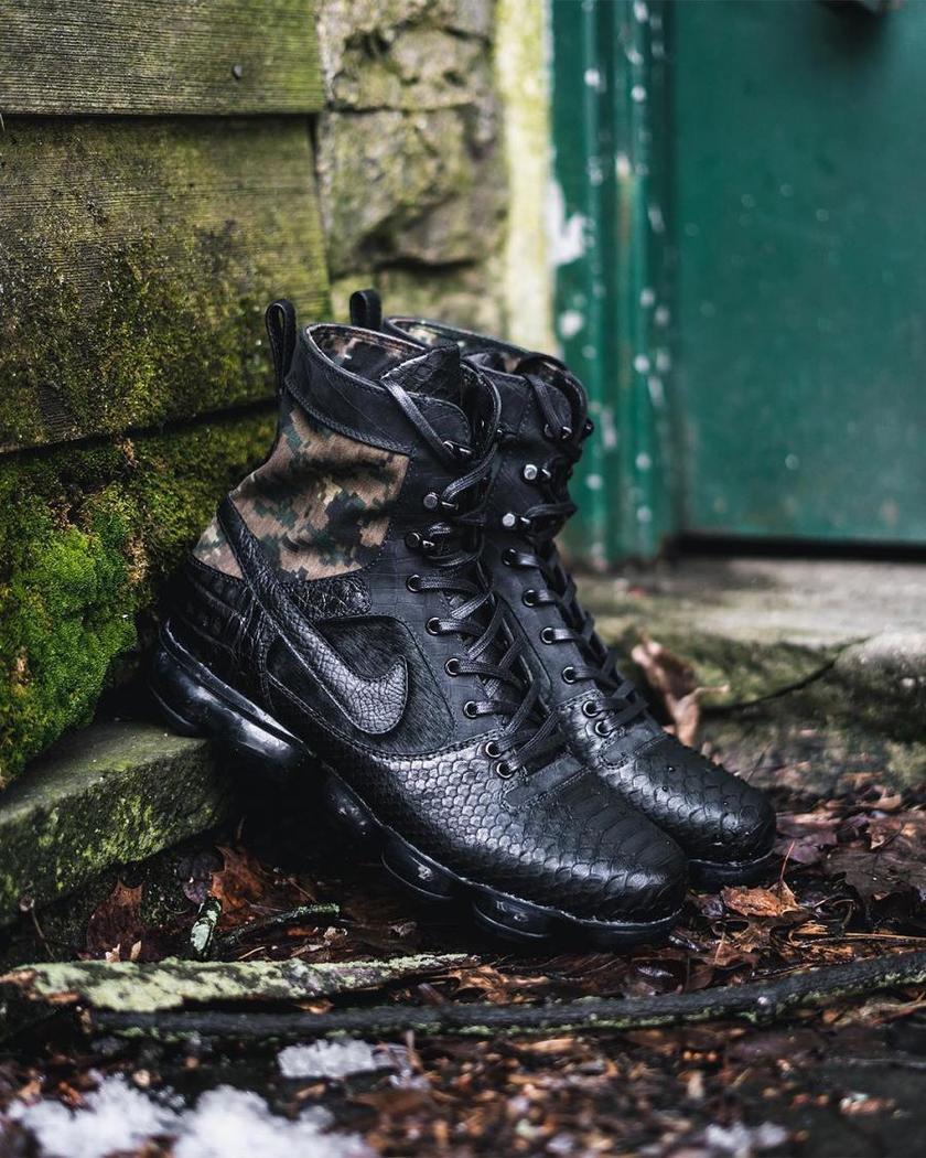 有没有想过Nike VaporMax 与靴子会沾上关系?近日网上就有网友脑洞打开,打造了一款靴子版本的 Nike VaporMax!以Nike Vapormax 为原型,并采用奢华的蛇皮纹路呈现,加高的鞋筒则搭载迷彩花纹,暗黑不失时尚,简直酷到不行!