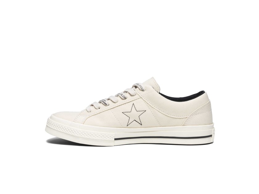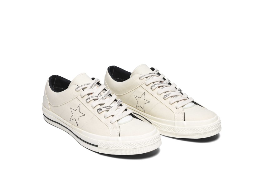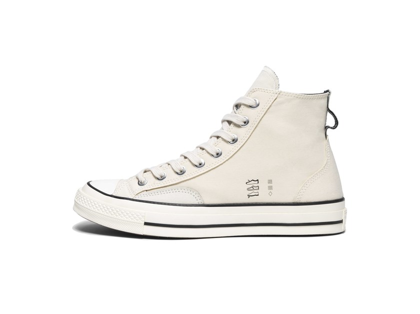 Converse x Midnight Studios 联名系列鞋款,初看似乎是半成品设计,实则颠覆了球鞋传统的固有元素,凸显了原色帆布未经漂白的自然色泽。