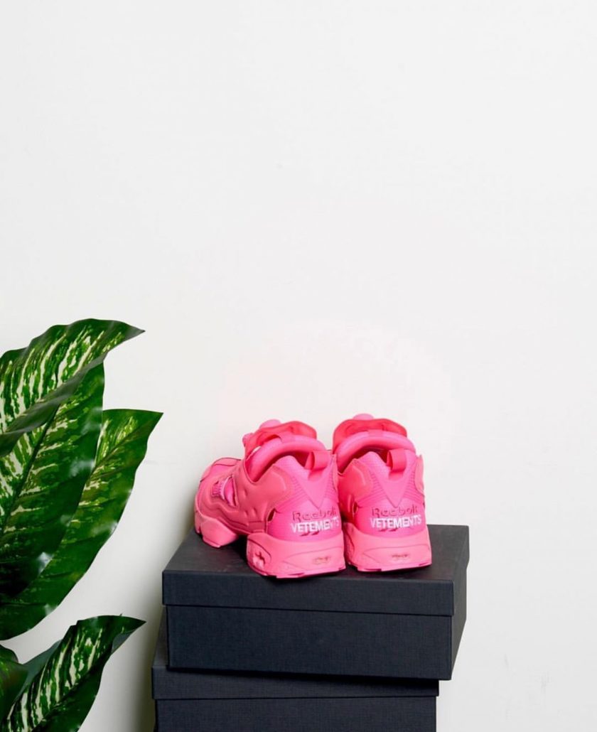 在 Vetements 联手 Reebok 大玩涂鸦、做旧以及 emoji 之后,此番在 Vetements 的 2019 秋冬系列中,双方再次带来全新联名作品。依旧以经典的 Instapump Fury 鞋款为蓝本,将艳丽的粉色与绿色注入鞋面,极具抢眼效果;在鞋款的后跟将双方 Logo 重叠呈现,立体感十足。