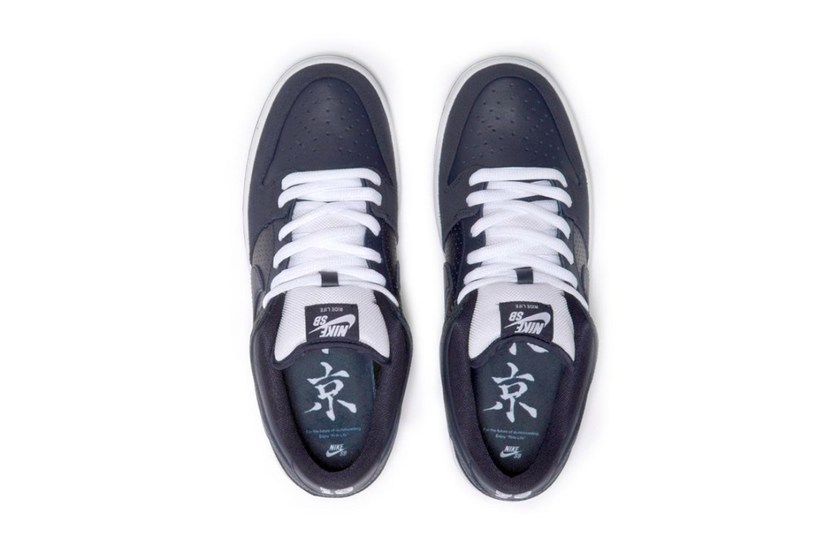 此番别注版 Nike SB 以“Dark Obsidian”色作主轴并配上了同色系的 Air Jordan 3 裂纹要素在内,创立于 1973 年的 Murasaki Sports 则把年份绣在鞋尾上,鞋舌 Nike SB Logo 下加入了“Ride Life”字样,同时更特别而低调地于鞋垫印上了“东京”二字。