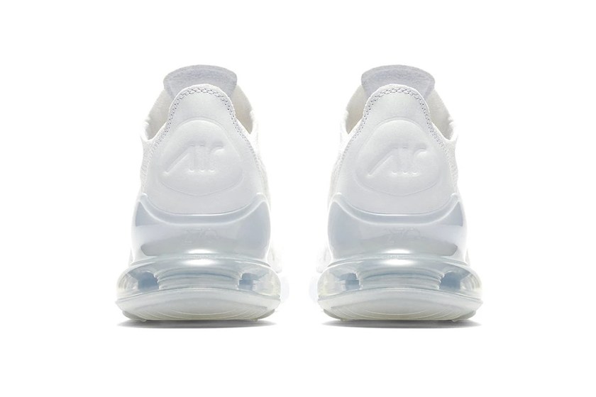 贵为年度 Air Max 系列鞋款一大重头戏之一的 Nike Air Max 270,融合 90 年代 Air Max 款式与革命性 Air 缓震技术的风格,并拥有 270 度可视式气垫,搭配流线形设计,成为不少街头鞋迷的最新选择。而今番 Nike 为它推出 Flyknit 编织鞋面版本,增添其透气与轻量性,并以干净利落的纯白“Triple White”作为配色主题,借由鞋面的面料差异表现细致的层次感,整体表现相当优美。Nike Air Max 270 Flyknit 最新配色“Triple White”,售价 $170 美金,感兴趣的朋友不要错过。
