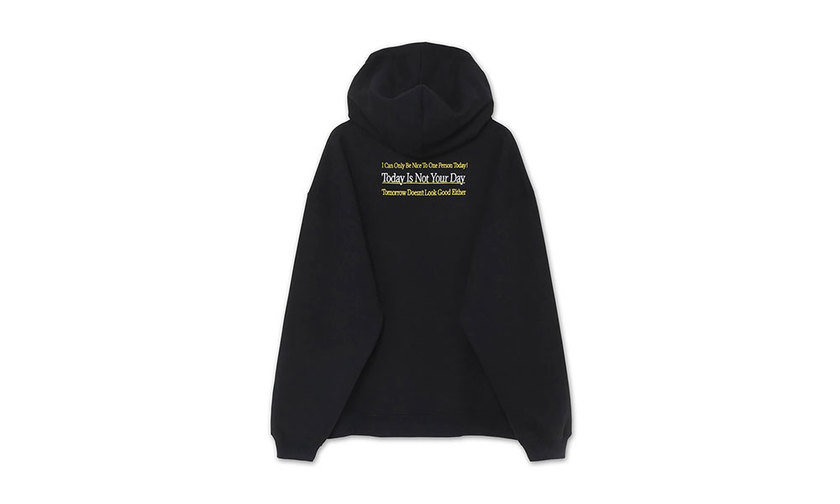 衣服背面的标语同样大胆、张扬:“I Can Only Be Nice To One Person Today! Today Is Not Your Day. Tomorrow Doesn’t Look Good Either.”。衣服的设计简洁大方却又不失独特个性,该件连帽衫售价定为 ¥103,000 日元(折合人民币约 ¥6,150),将于 6 月 22 日登陆 Restir 线上商城,6 月 23 日起在实体店铺发售。
