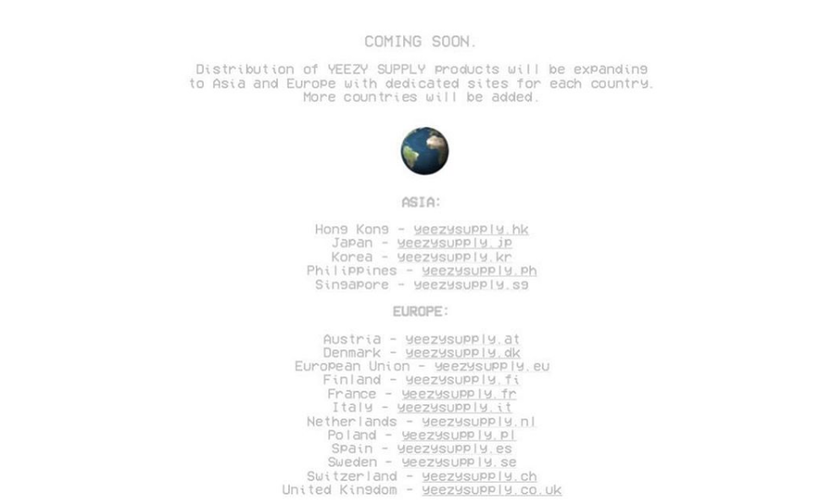 对于 Kanye West 和 YEEZY 的粉丝们来说,想要在 YEEZY SUPPLY 官网购买商品一直都不是件容易事,除了要支付更高的运费和关税之外,大部分商品甚至都不支持直邮中国大陆地区,这的确平添了不少麻烦。不过好消息是…这种情况在以后就要好得多了。今日据情报账号 @yeezymafia 透露,YEEZY SUPPLY 将在不久后为亚洲和欧洲等多个国家上线专门的购物网站,以减少昂贵的运费和海关费用,目前虽然列表中依旧不包含中国大陆,不过相比之下在香港官网购物应该就要方便的多了吧?