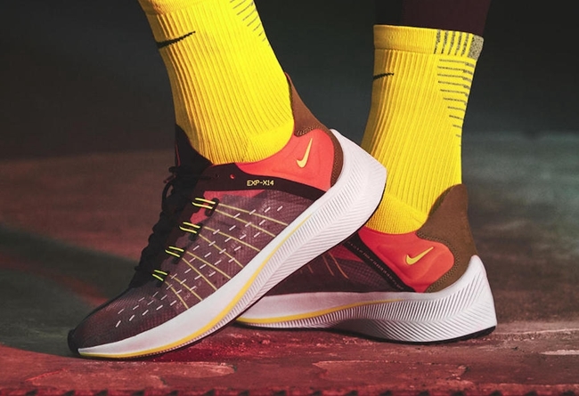 Nike Sportswear 再度推出搭载 React 科技的全新鞋型 EXP-X14!鞋型延续 Zoom Fly、Zoom Vaporfly 4% 等鞋款的竞速风格,流畅的鞋面及尖锐的后跟设计。鞋面为类似 Zoom Fly SP 的半透明材质,中底搭载 React 科技,鞋名中 X14 是 React 科技最初的内部代号。