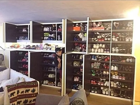 当然最让人羡慕的还是像djkhaled家这样,用一整个房间打造的“球鞋储藏室”