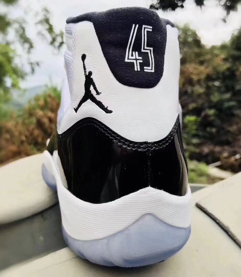 近日,ins 知名爆料账户 @pinoe77 释出了将于今年年底复刻的 Air Jordan 11 “Concord” 实物后跟图。从图上我们可以清晰的看到,这款2018版康扣与2016版大灌篮一样,采用相同的“45”号后跟以及 Jumpman Logo 设计。而近期常见的大漆皮设计也不出意料的出现,让人好生纠结。