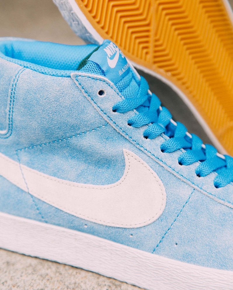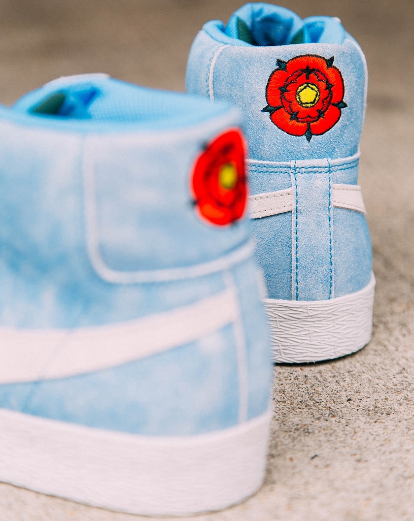 在去年八月的第二次合作之后,滑板传奇 Lance Mountain 又再度携手 Nike Skateboarding 在今年夏日带来全新 Blazer。和上次的彩虹设计不同,这次要简约的多,以天蓝色为主调,搭配白色 Swoosh 和中底,清爽干净;采用滑板标配麂皮材质打造,鞋后跟有醒目的玫瑰花刺绣,充满标志性。预计这双鞋将会在 7 月 10 日正式登陆各大零售商,喜欢滑板的朋友不要错过。