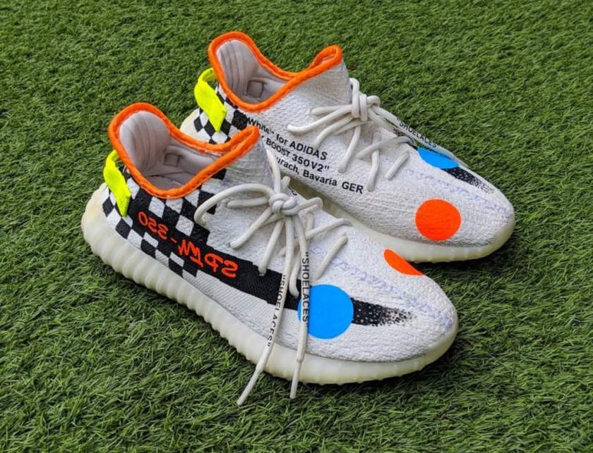 近日,ins账户@edmondlooi晒出了几张全新的Yeezy 350v2 Boost 鞋款定制设计,将极具特色的OFF-WHITE 足球主题融入了Yeezy 350v2鞋款,纯白色的鞋面加入橙色、蓝色、黑色、黄色等多种色彩加持,视觉效果极为爆炸。同时鞋带、鞋身侧边也都模仿OFF WHITE加入了英文设计,不知道你觉得如何?