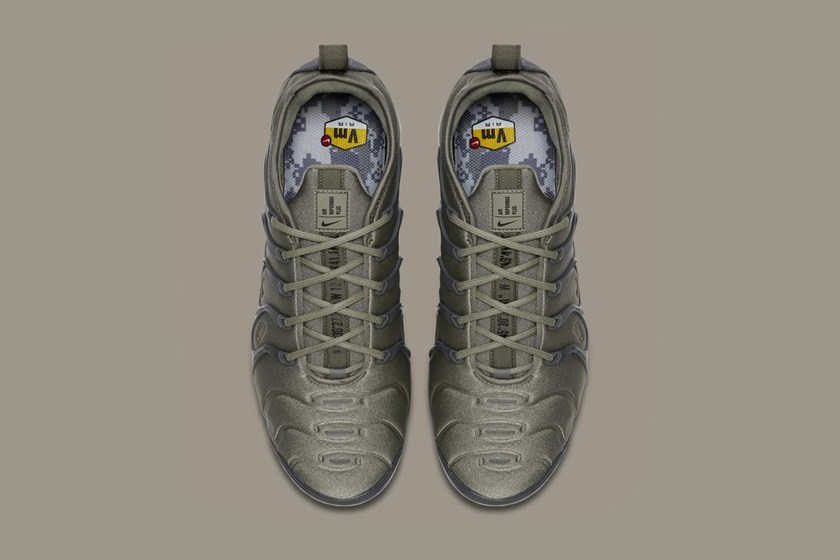 Nike 旗下 Air VaporMax Plus,结合了 Air Max Plus 的经典以及 Air VaporMax 的科技感,Air VaporMax Plus 凭借前卫外形与舒适脚感赢得不少粉丝青睐,近日,Nike 便将“沙漠迷彩”与“数位迷彩”两样元素加入在这双鞋款之中。以沙色与水泥灰为主要色调,在半透明的 VaporMax 与鞋垫上低调的加入了“沙漠迷彩”与“数位迷彩”印花。据悉,这两款全新的 Nike Air VaporMax Plus 将于近日上架,每双售价为 $190 美元,感兴趣的朋友务必留意。