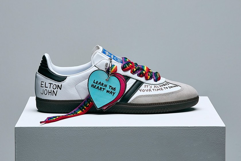 adidas Originals 此番又联手英国 DJ Fat Tony,并特别邀请到 Pharrell Williams, Blondey McCoy, Elton John, Rita Ora, Kate Moss, Marc Jacobs, Naomi Campbell, David Beckham 等名流参与设计,打造了一系列充满实验色彩的 Samba「Pride」别注鞋款,再次表达对于 LGBTQ 群体的支持。