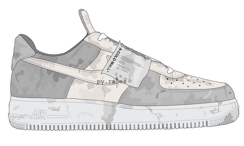 由 Samuel Ross 主理的时尚品牌 A-Cold-Wall* 与 Nike 打造的 Air Force 1 Mid 市场价如今已经高达五位数。情报账号 @py_rates 今日透露 A-Cold-Wall* x Nike 新款联名 Air Force 1 Low 将会在 10 月份迎来发售,包括黑、白两个配色。从模拟图可以看到 A-Cold-Wall* 标签会采用外置的设计,而且鞋面也会呈现出 DIY 似的效果,应该和 Samuel 那双非常相似。已经期待万分?希望市场价可以 “温柔” 些吧。