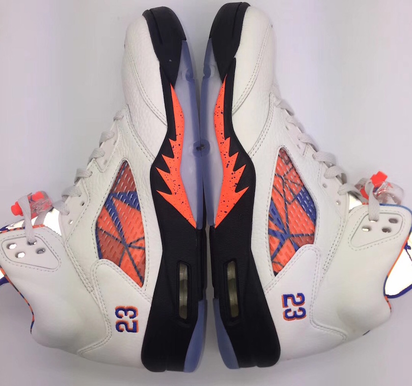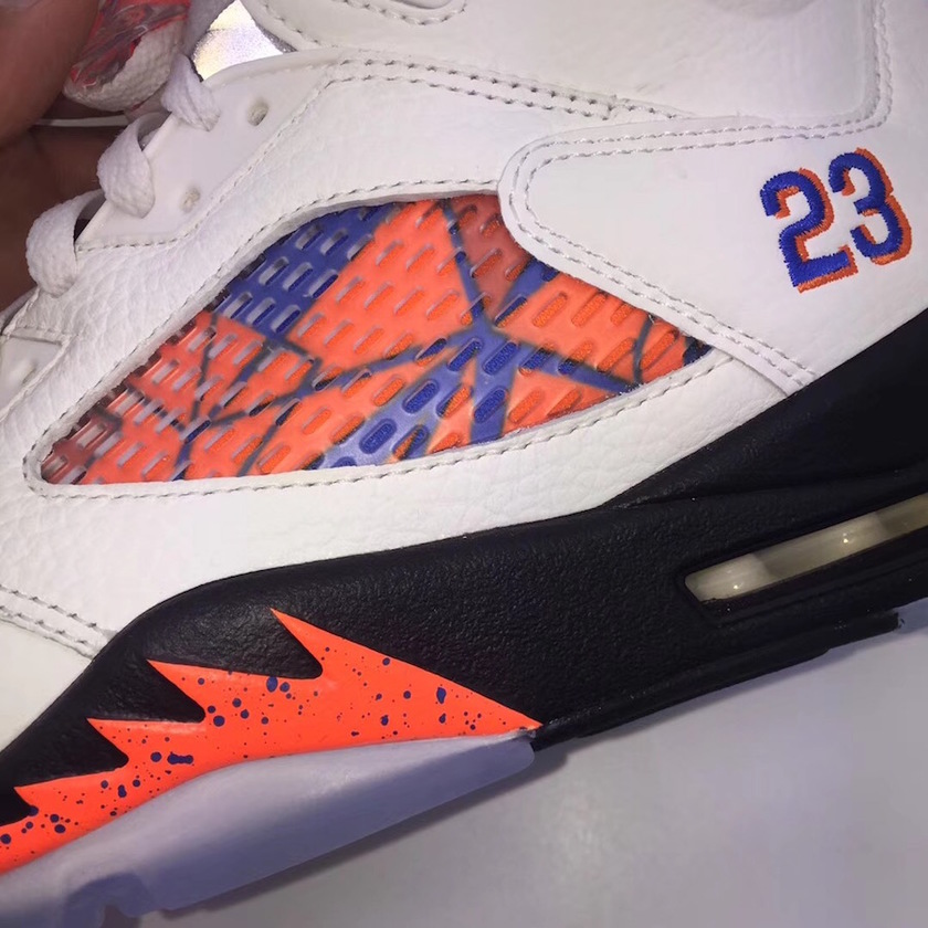 此番全新 “International Flight” 配色是以1990年8月乔丹参加的西班牙巴塞罗那表演赛为灵感。鞋面采用相对较暖的帆白皮革,内衬、鲨鱼牙等鞋面细节均以橙蓝二色装点。而鞋面透气网设计则是受巴塞罗那街头艺术启发,极具西班牙风情。除此之外,5代标志性的3M鞋舌依旧存在,为这款全新配色点亮黑暗。