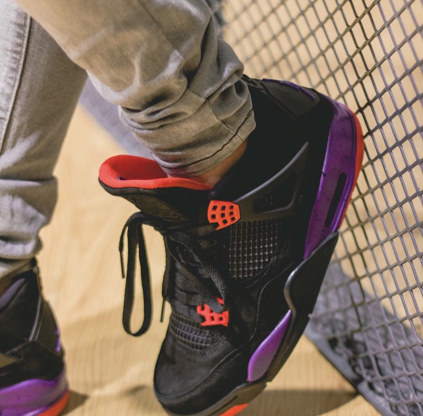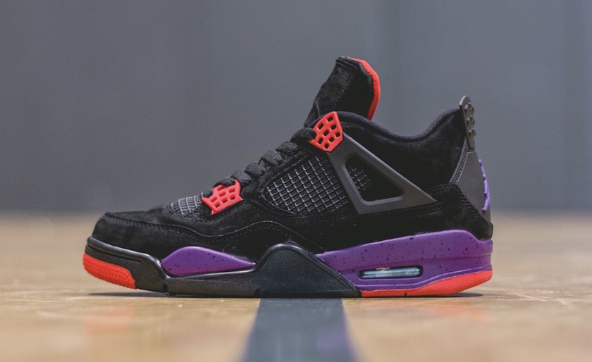 作为传说中 Drake 未发售的联名配色,这款 Air Jordan 4 NRG “Raptors” 采用类似 Air Jordan 7 猛龙的配色方案,黑色麂皮鞋面搭配紫、红二色细节,上脚美如画!据悉,多伦多正是 Drake 的家乡,这种以家乡为主题的设计思路到与前段时间发售的 Travis Scott 联名4代极为类似。