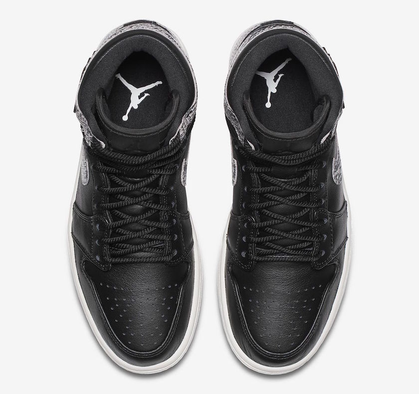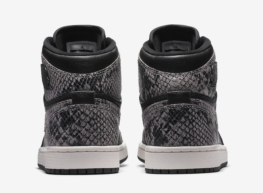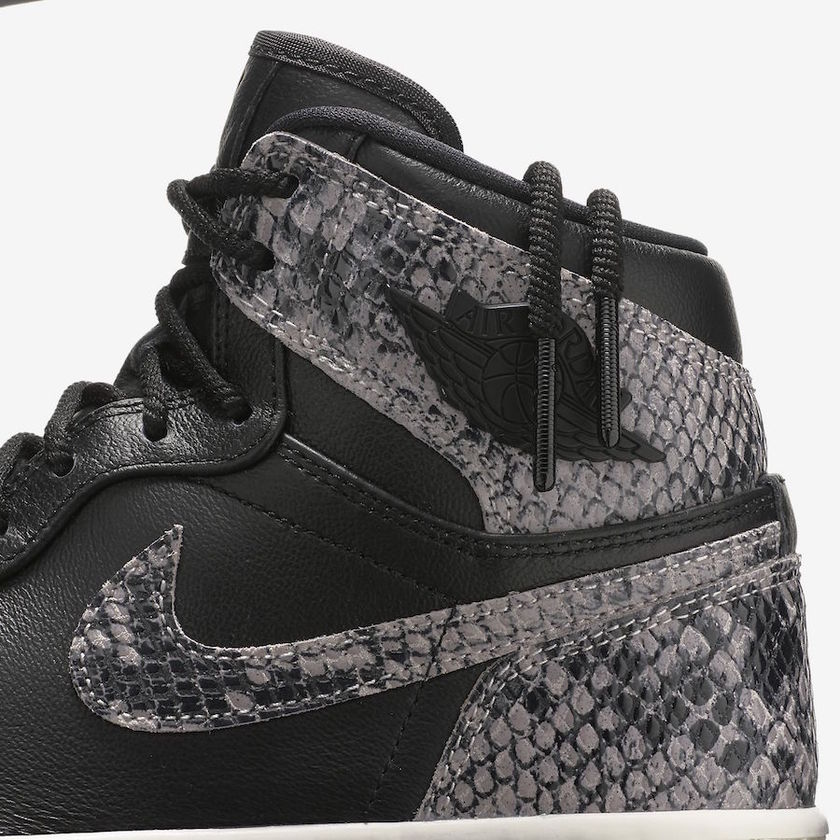 这款暗黑风十足的 Air Jordan 1 黑色蛇纹整体采用纯黑的优质皮革打造,后跟、鞋帮、Nike Swoosh 搭配黑灰二色的蛇纹元素,整体感觉与 OG 中的 “Shadow” 配色类似,但又比 “Shadow” 更为狂野。